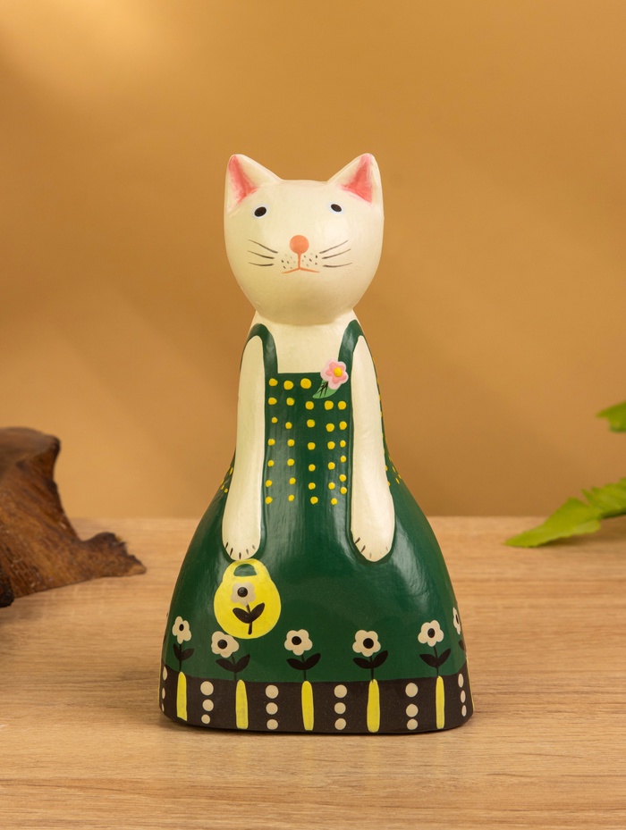 УЦЕНКА Сувенир дерево «Белая кошка в зелёном платье» 9×5×15.5 см