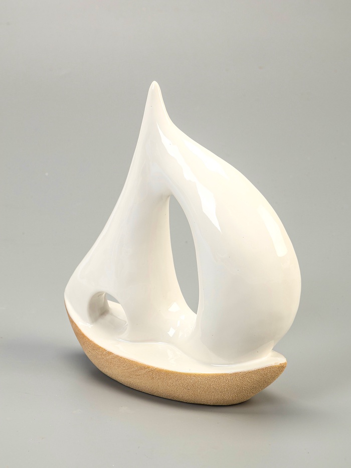 УЦЕНКА Сувенир керамика «Большой парусник» песочно-белый 22.5×8.5×25.3 см