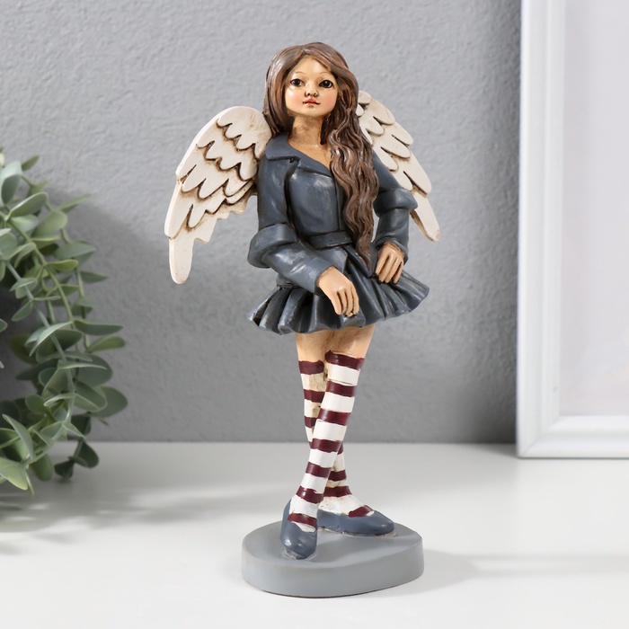УЦЕНКА Сувенир полистоун "Девочка-ангел в сером платье и полосатых гетрах" 12х6,5х19,5 см