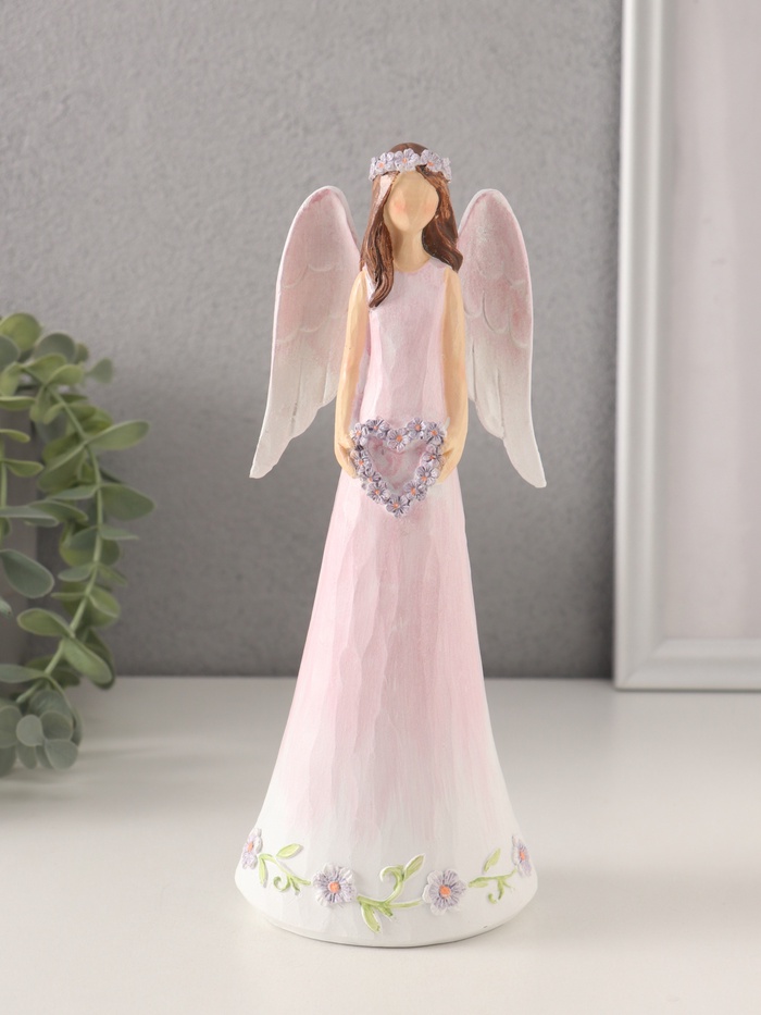УЦЕНКА Сувенир полистоун "Девушка-ангел в нежно-розовом платье с венком-сердце" 8,5х6х21,5 см 1058