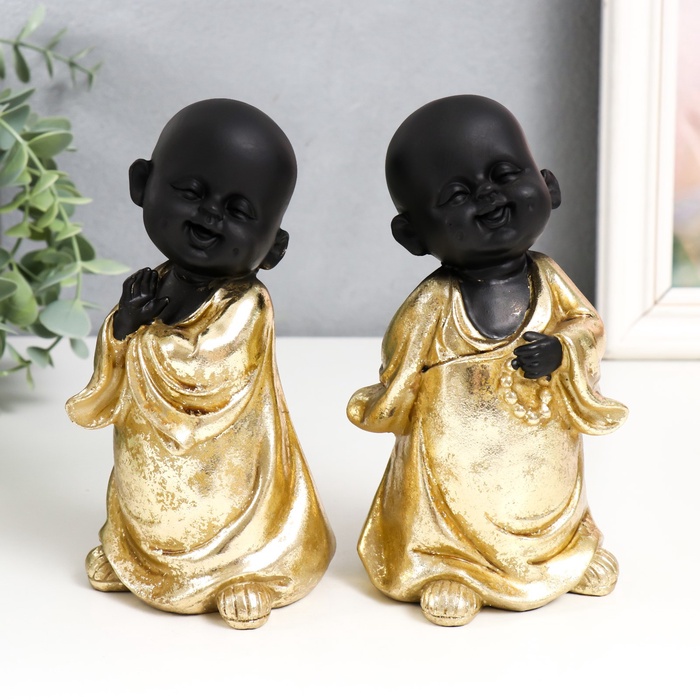 УЦЕНКА Сувенир полистоун «Маленький Будда в золотом. Веселье» МИКС 8×7.7×16.5 см