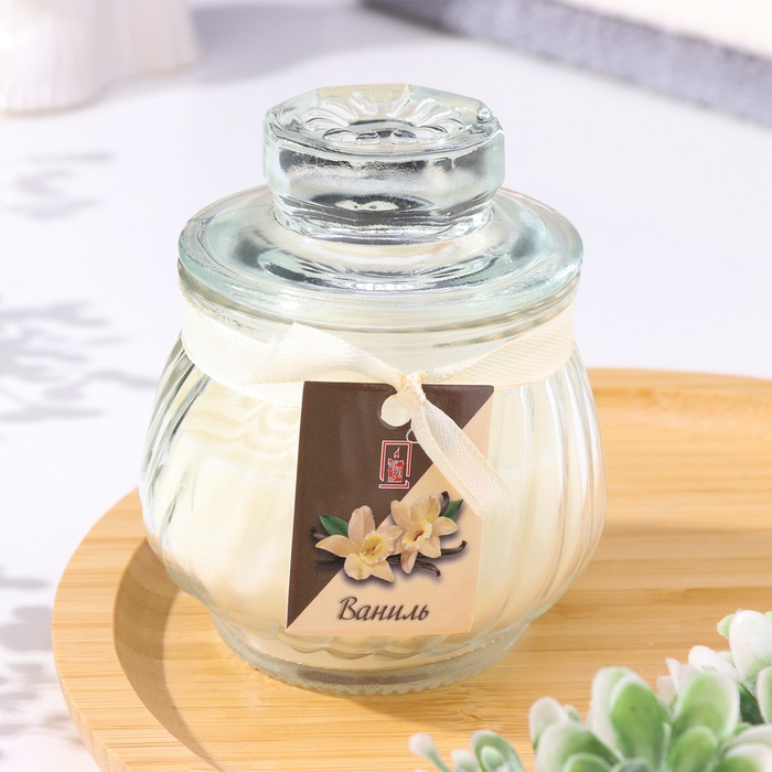УЦЕНКА Свеча ароматическая в банке "Горшочек" 9х7,5см, ваниль