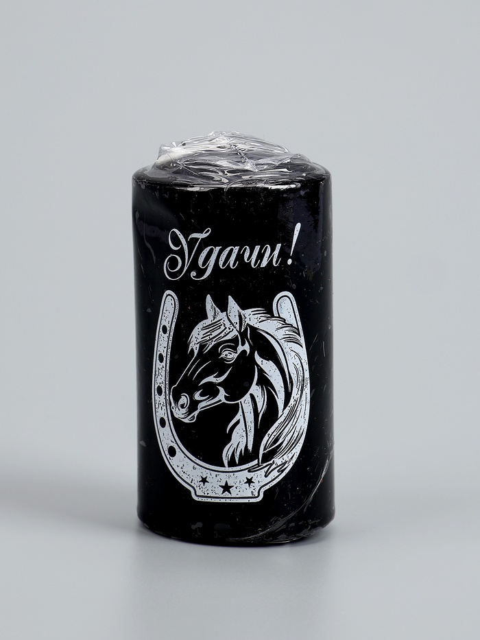 УЦЕНКА Свеча - цилиндр 50×100 мм «Конь с подковой», с накаткой, чёрная