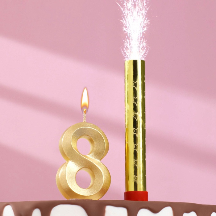 УЦЕНКА Свеча для торта цифра "Грань + фонтан" золотая "8"