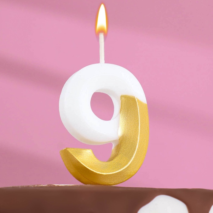 УЦЕНКА Свеча для торта на шпажке «Грань», цифра 9, 5.5 см, бело-золотая