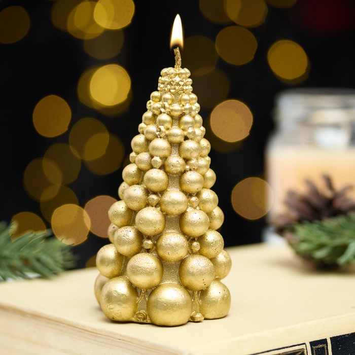 УЦЕНКА Свеча «Ёлка из шаров» 50×100 мм, лак, золотой