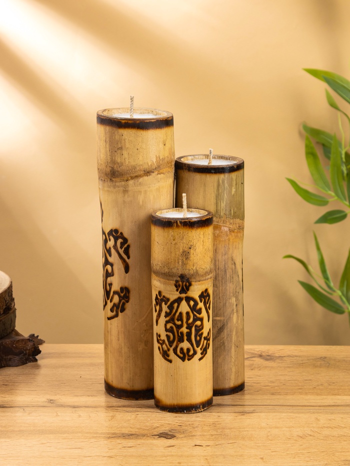 УЦЕНКА Свеча в бамбуке тройная «Экзотика» 13×15×30 см, 100 мл, цв. бежевый
