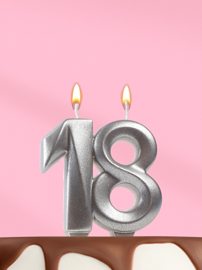 УЦЕНКА Свеча в торт «Грань», цифра 18, серебро
