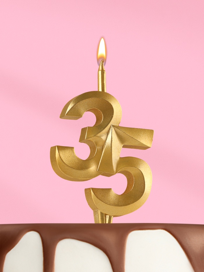 УЦЕНКА Свеча в торт «Юбилейная», цифра 35, золотая