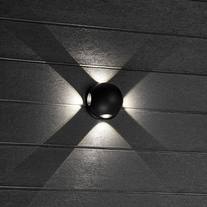 УЦЕНКА Светильник настенный накладной NUOVO, 103×103×77 мм, 4 Вт, 4200К, IP54, 4 луча, чёрный