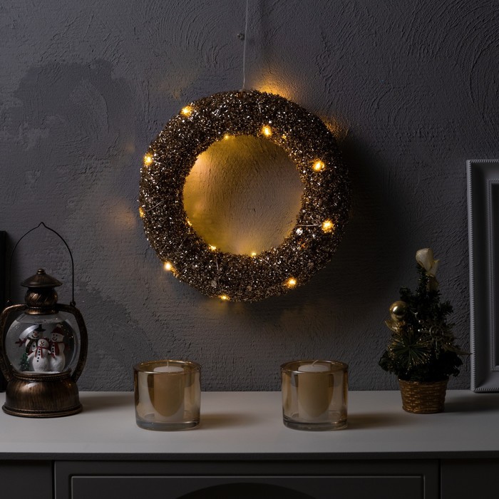 УЦЕНКА Светодиодная фигура «Венок золотистый» 30 см, металл, от батареек ААх2, свечение тёплое белое