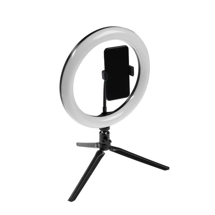 УЦЕНКА Светодиодная кольцевая лампа на штативе LuazON CB-31, 26 см, 21 Вт, 3 режима, USB