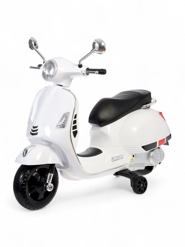 Садитесь за руль стильного скутера! Белый электромотоцикл с подсветкой и звуковыми эффектами – это игрушка, которая перенесёт вашего ребёнка в мир скорости и приключений.