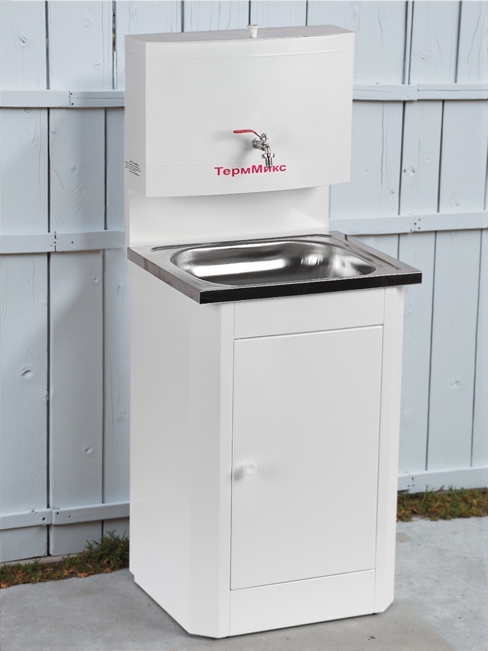 )Умывальник "ТермМикс" подойдёт для использования на даче, в гараже, в мастерской и других местах без центрального водоснабжения. Мойка выполнена из нержавеющей стали.