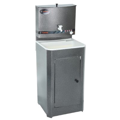 Умывальник TUNDRA — отличное приобретение для дачи, гаража, мастерской или других мест без центрального водоснабжения. Металлическая конструкция серебряного цвета проста в эксплуатации и уходе, обладает высокой износоустойчивостью. Раковина выполнена из пластика, а на бак для воды нанесено невосприимчивое к коррозии запатентованное покрытие. Огромное преимущество — наличие встроенного водонагревателя, который будет особенно актуален в прохладную погоду.