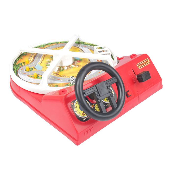Установите на игровое поле машинку, нажмите кнопку «Пуск», выберите одну из 3 скоростей на коробке переключения передач и начинайте движение. После старта гоночная трасса начнёт крутиться по часовой стрелке, а вам необходимо её придерживаться, объезжая все препятствия. Переключение передач производится вручную с помощью специального рычага для ускорения или замедления. Для усложнения игры вы можете закрепить на поле вторую машинку из комплекта. Питание игры осуществляется с помощью 2-х элементов типа A (R14).