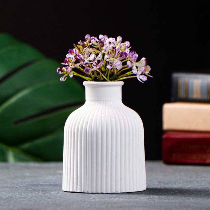 Эта белая гипсовая ваза станет акцентом вашего интерьера. Её ритмичный рельеф и мягкая матовая поверхность создают ощущение уюта и спокойствия. Компактный размер делает её идеальной для небольших пространств.