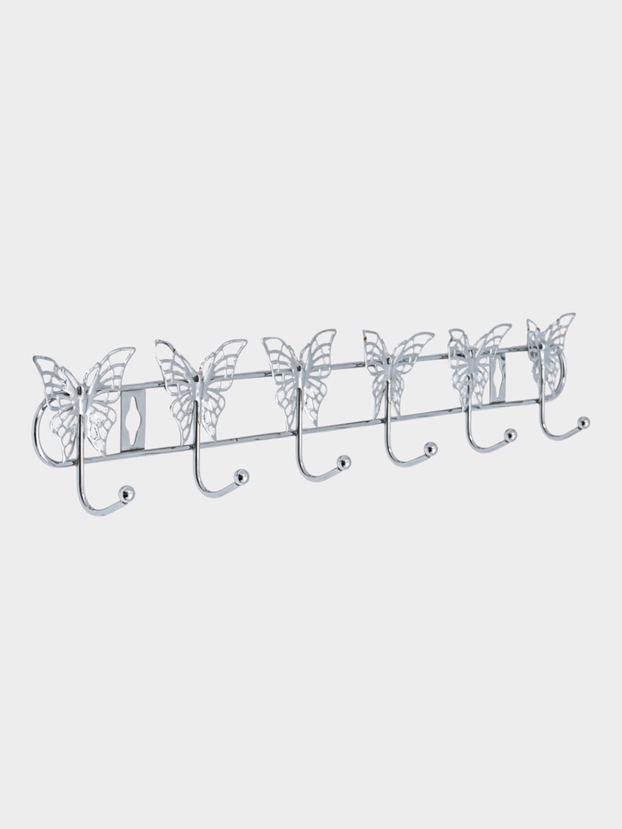 УЦЕНКА Вешалка на 6 крючков 42×3×6.5 см «Бабочки» цвет серебро