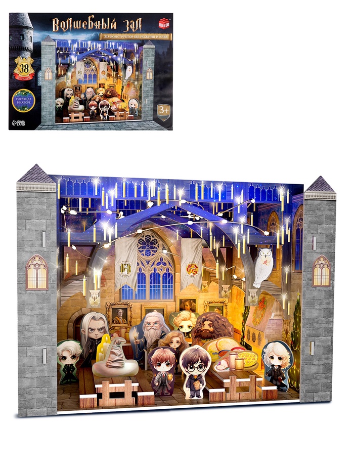 Создай волшебное пространство с сияющим светом! Конструктор 3D «Волшебный зал» с гирляндой – это атмосферный набор, в котором детали складываются в изящную миниатюрную композицию. Светодиодная гирлянда придает модели теплое сияние, создавая уютную декоративную зону.