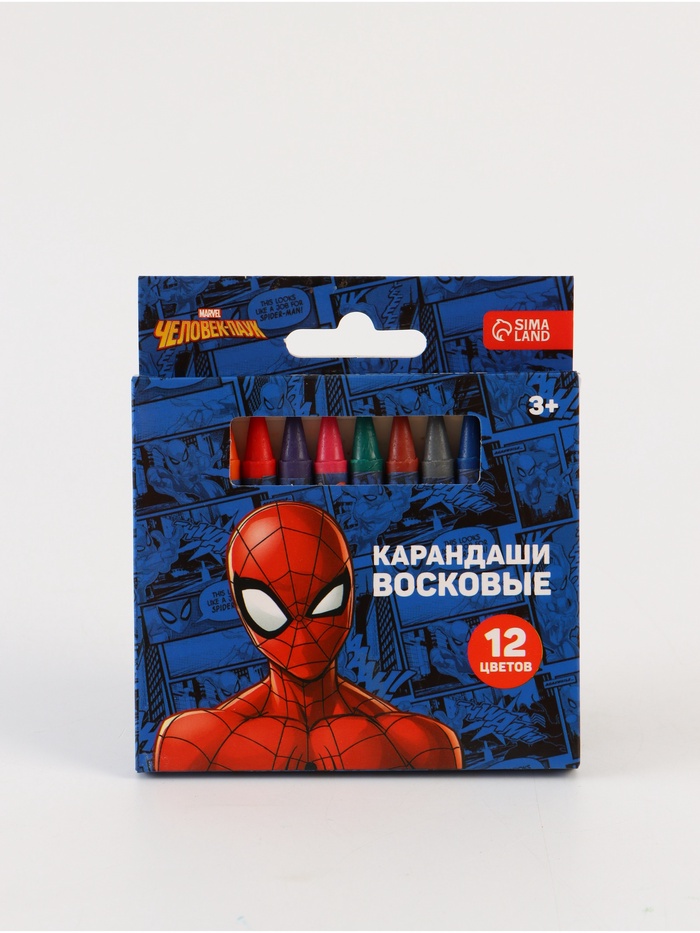 УЦЕНКА Восковые карандаши Человек-Паук, набор 12 цветов