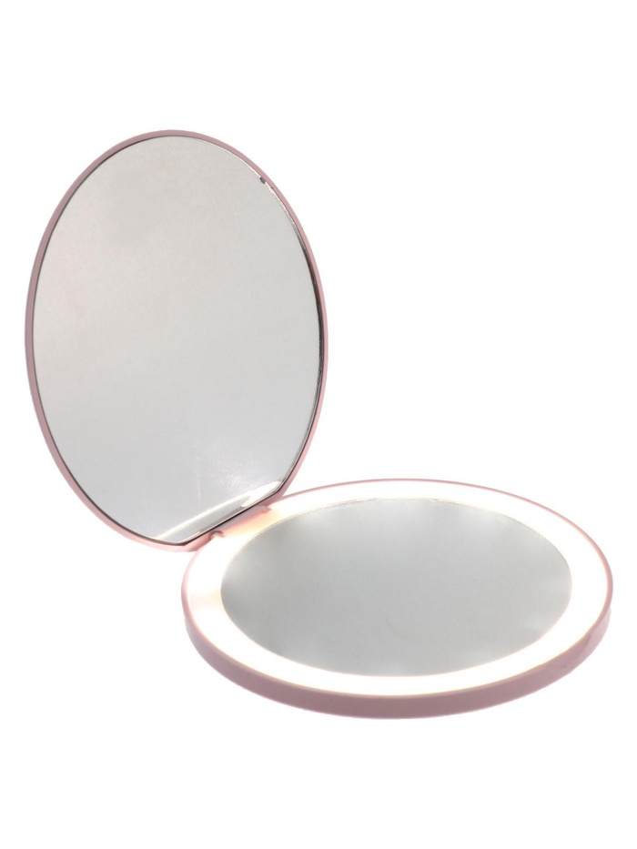 УЦЕНКА Зеркало KZ-02, с подсветкой, 9×9×0.7 см, 1 диод, от USB, розовое