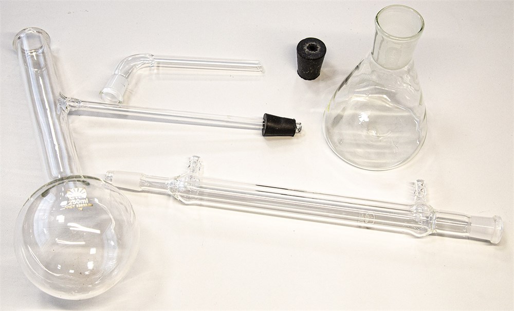 Установка предназначена для демонстрации очистки веществ, методом перегонки, для веществ, температура кипения которых не превышает 100°С, а также разгонки веществ.