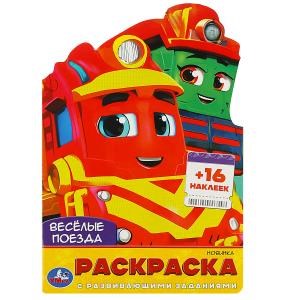 Весёлые поезда. Раскраска с развивающими заданиями. 145х210мм. 16 стр. + 16 наклеек. Умка