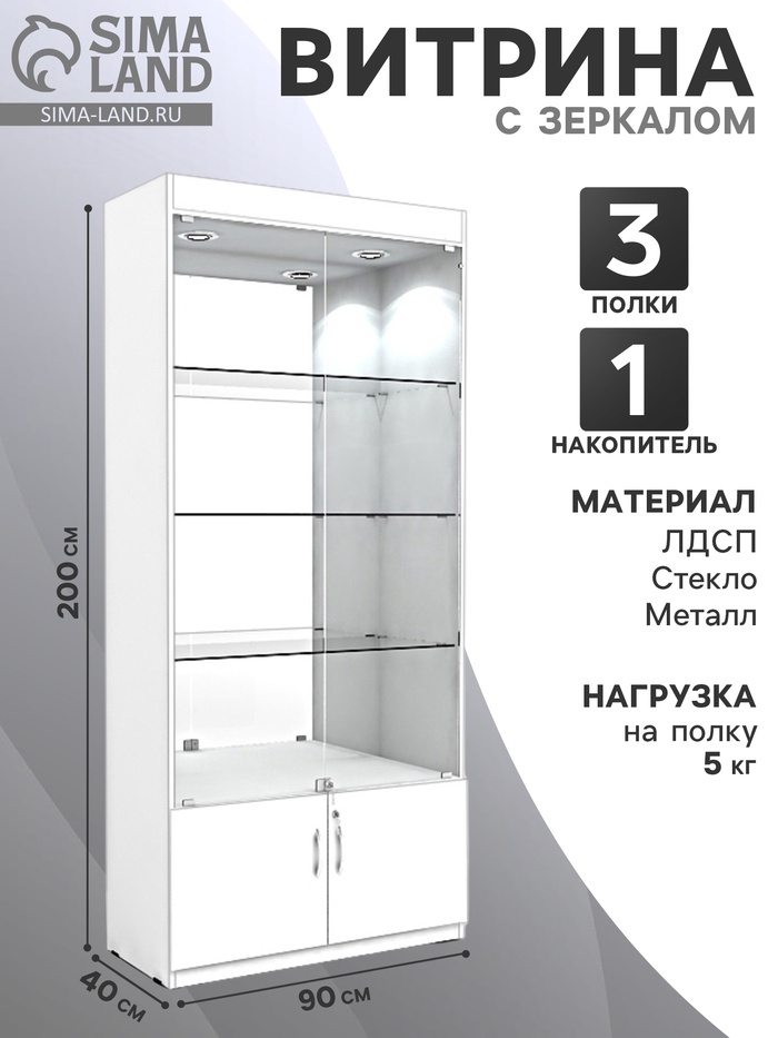 Витрина с зеркалом из ЛДСП 900×400×2000 мм, белая