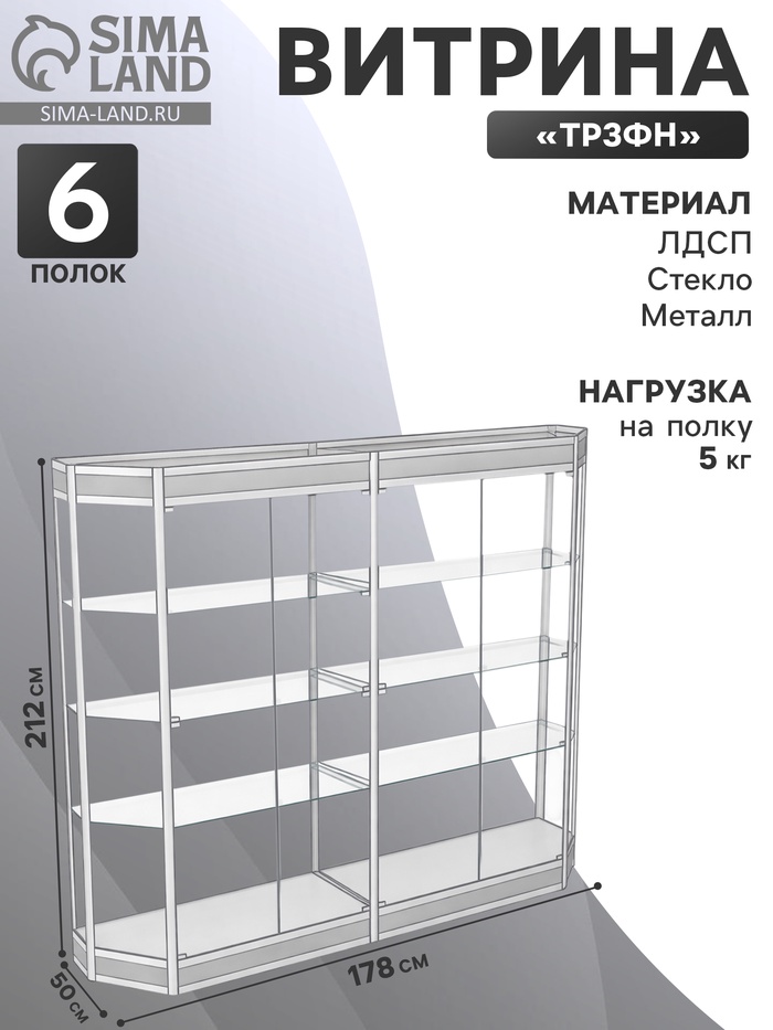 Витрина ТР3фн, 1780×500×2120, ЛДСП, стекло, белая