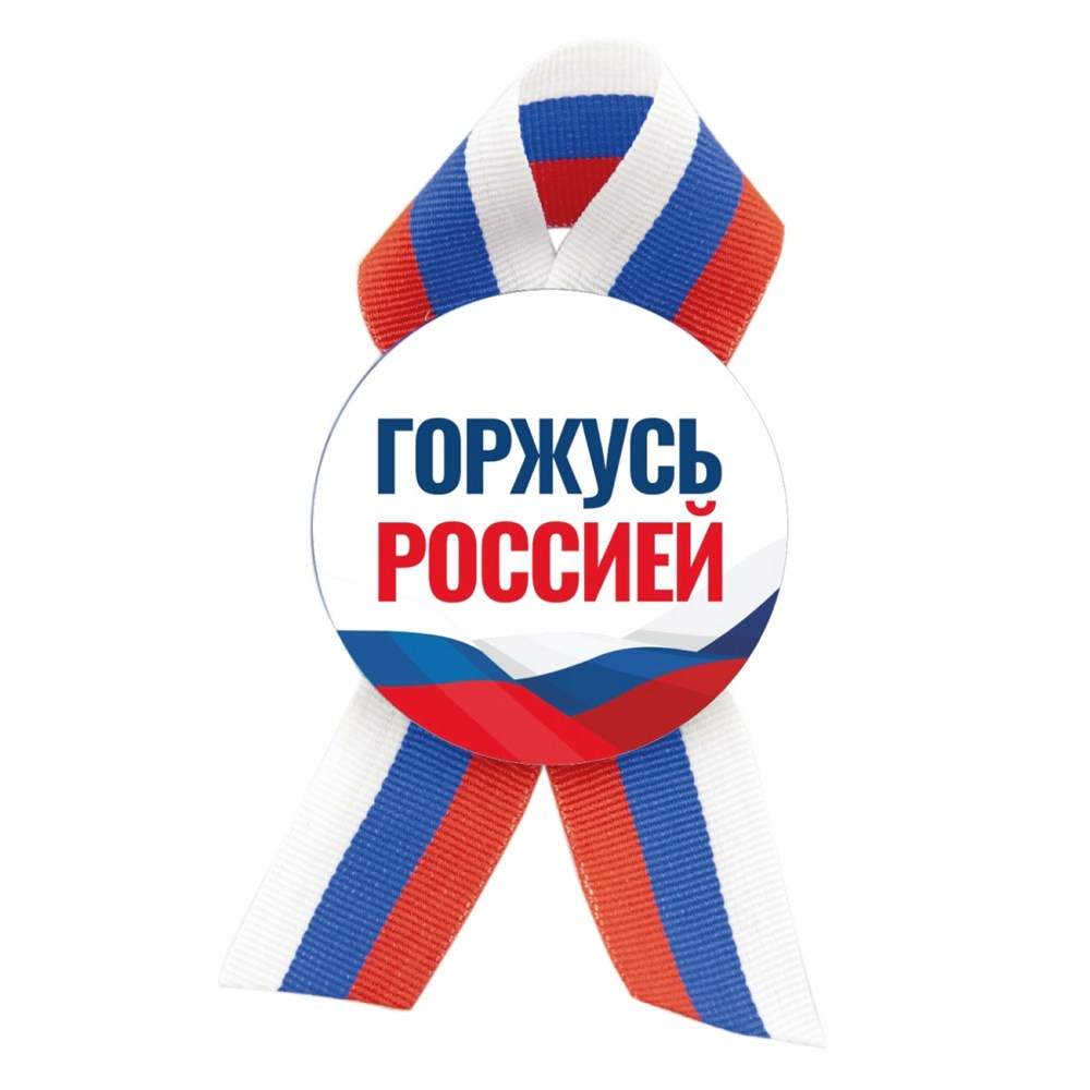 Значок с лентой триколор "Горжусь Россией" 032001мз56007